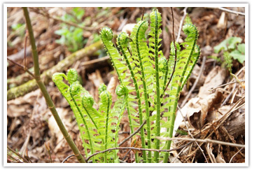 同じく若芽をいただく、この季節の山菜といえば「コゴミ」。正式名称を「クサソテツ」というシダ植物の若芽で、くるくると渦を巻いた愛らしい姿が特徴的。山菜には珍しく「アク」がほとんどないため、手軽に調理できる優等生です。