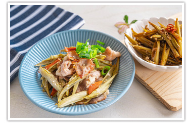おすすめは、油炒めや煮物、甘酢漬け。皮を剥いてアク抜きをした後、豚肉などと一緒に油炒めにすると、ポリッとした竹の子のような食感が際立ち、酸味が最高の隠し味になります。冷やして食べる「甘酢漬け」すなわちピクルスも、初夏の火照った身体が喜ぶ一品です。