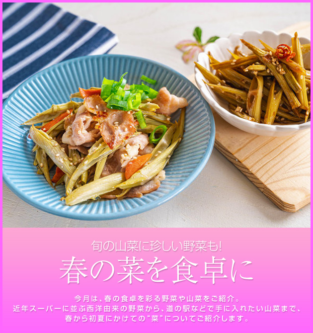 これら山菜は、旬を逃すと一気に成長し、食べ物としては不向きになるもの。直売所などで見かけたら、ぜひ手に取ってその日のうちに山の恵みをいただいてください。